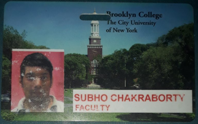 Hi - I am Subho, though I prefer to be called Sunny. I earned an MS in Physics from Texas A&M and was doing Physics PhD in City University of New York, before discontinuing for personal reasons. Shown is my ID card, when I used to teach at Brooklyn College, New York.